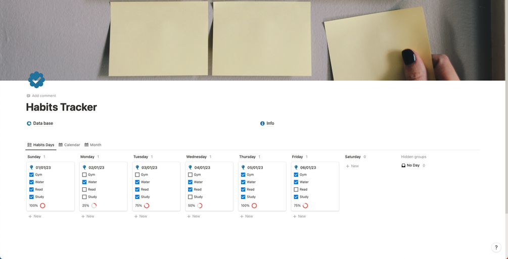 Las plantillas de Habits Trackers son la herramienta perfecta para alcanzar tus objetivos y mejorar tus hábitos diarios. Con esta plantilla de Notion, podrás hacer un seguimiento automático de tus hábitos diarias y contabilizarlos por día y mes. ¡Ya no tendrás que preocuparte por crear manualmente tus tarjetas diarias! Además, la plantilla es completamente personalizable y se ajustará a tus necesidades. ¡Empieza hoy mismo a mejorar tus hábitos con Habits Tracker!